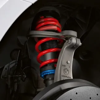 * Its coilover design with height-adjustable springs allows the ride height to be lowered by up to 10mm.